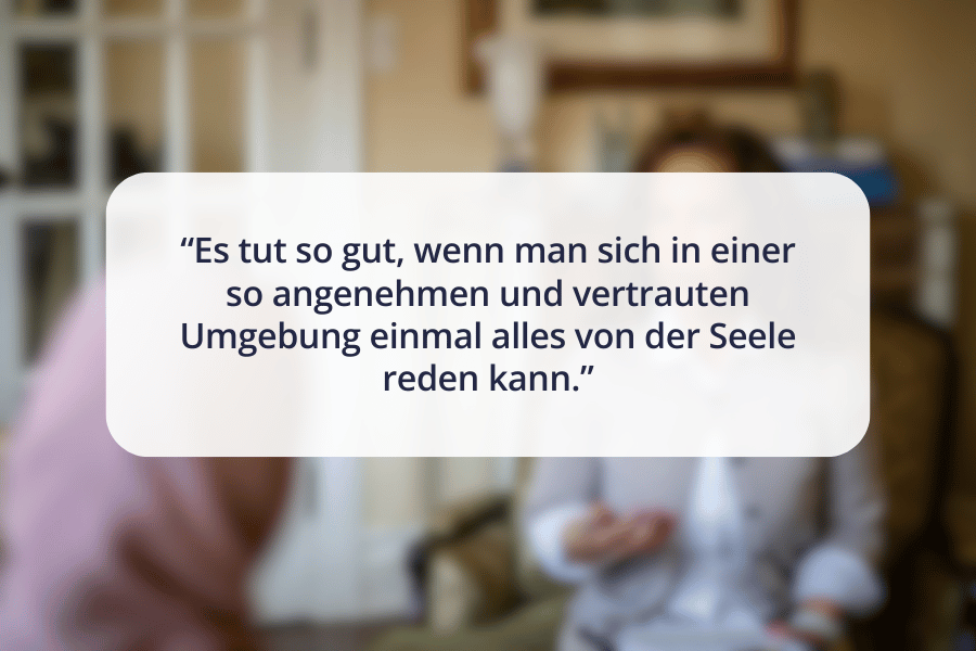 ``Das Team ist liebevoll und professionell und die Projekte sind wunderbar und hilfreich! Ich hätte es ohne eure sehr schnelle, herzliche, kraftgebende und stabilisierende Unterstützung nicht geschafft! Von ganzem Herzen Danke, dass ihr für uns alle da seid und für das tolle und liebevolle Projekt Regenbogen.`` (Veronika, Patientin)